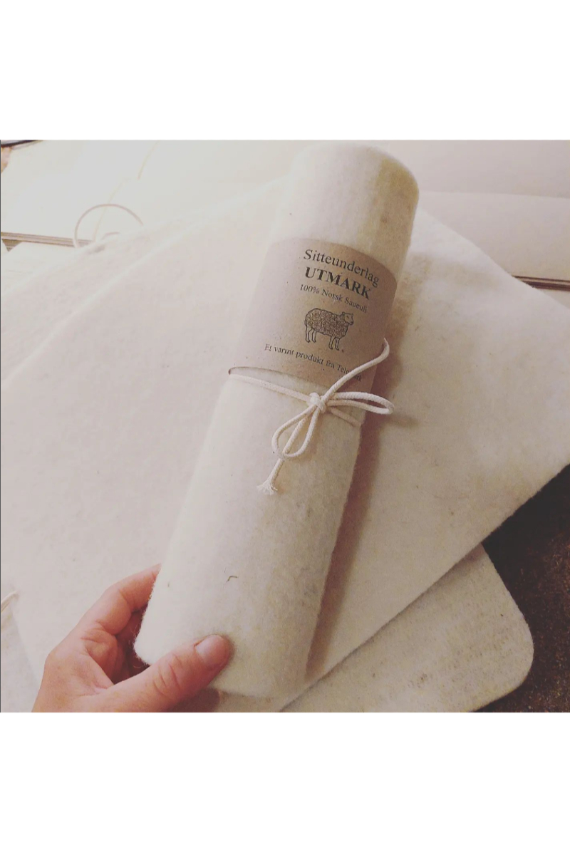 • Utmark Sitteunderlag er laget av 100% ren norsk saueull. På grunn av sin varmeisolerende egenskap er det perfekt å ha i tursekken, på hyttebenken eller i campingstolen.